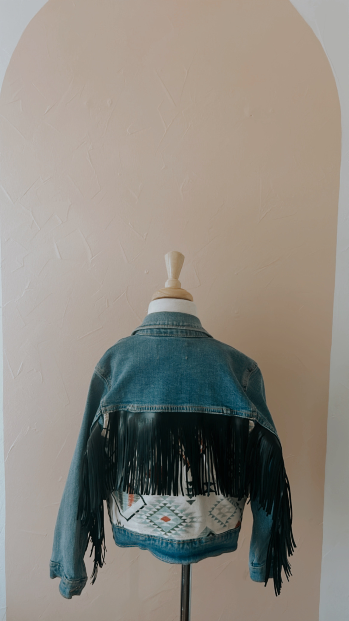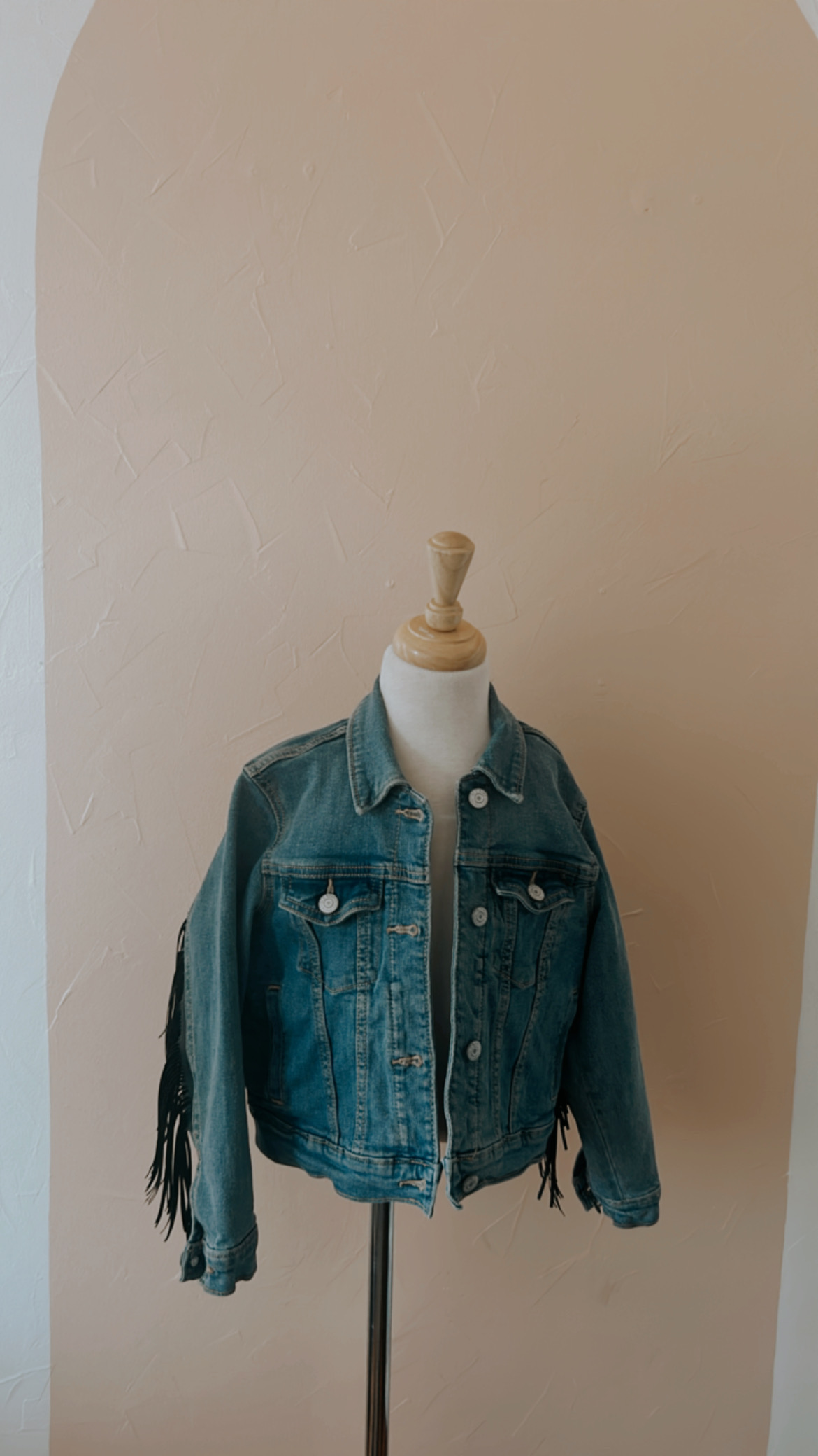 One of a kind upcycled fringe denim jacket. All denim jackets are ReSale items. Spot clean only.
